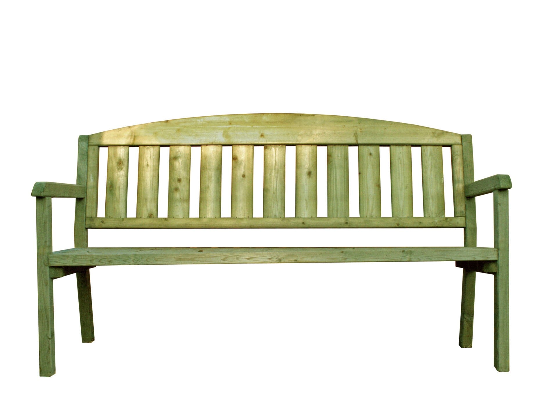 Pressure treated softwood. Our excellent value bench is wide enough to seat 3. The simple design is solid, sturdy and easy to assemble.